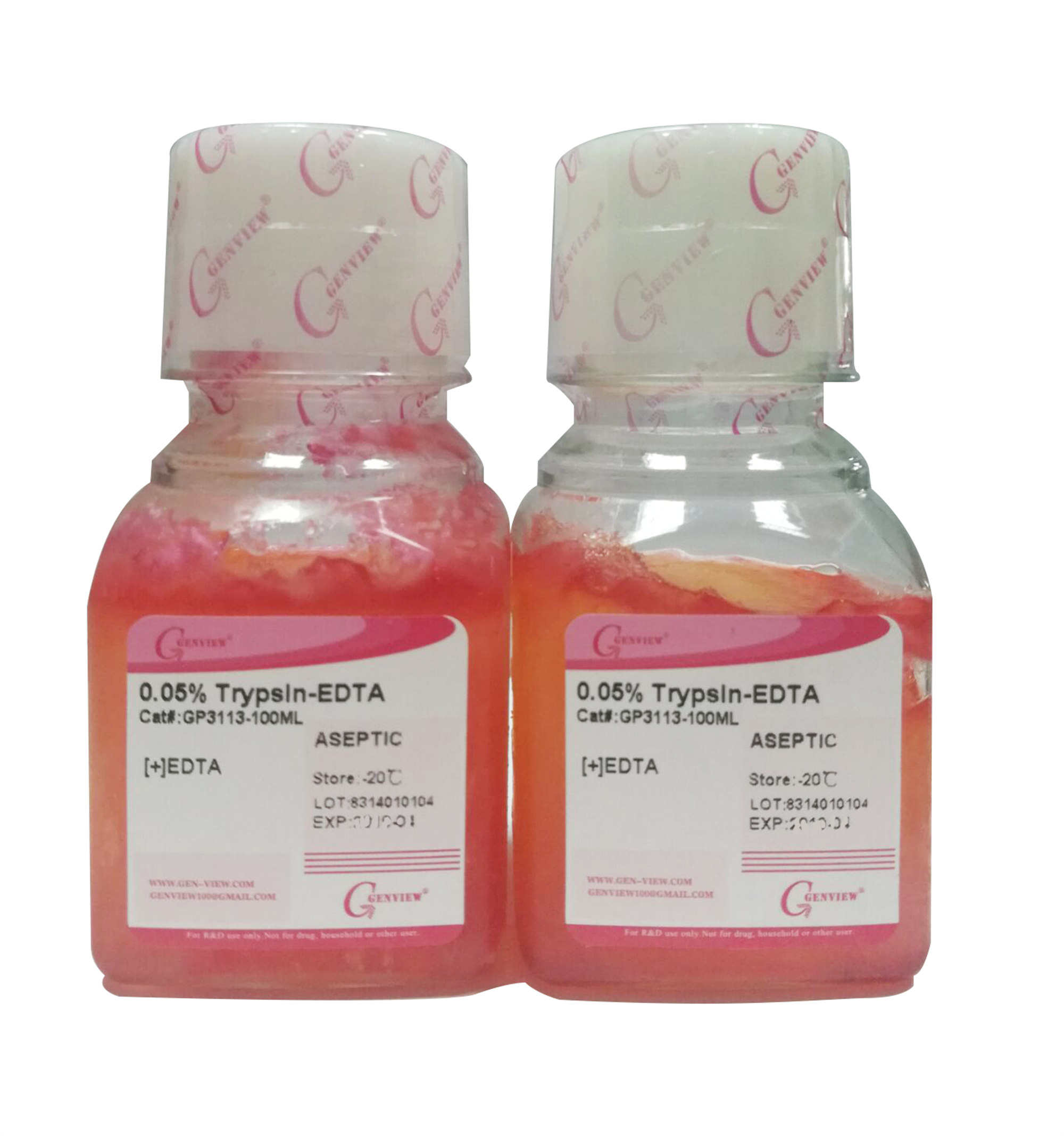 胰蛋白酶(Trypsin)是一種絲氨酸水解酶,它能把多肽鏈中賴氨酸和精氨酸殘基中的羧基側(cè)切段,水解細(xì)胞間的蛋白質(zhì),破壞細(xì)胞間的連接,從而使組織或貼壁細(xì)胞離散成單個(gè)細(xì)胞。本產(chǎn)品含0.05%胰蛋白酶,0.02%EDTA,溶于D-PBS平衡鹽溶液中,可直接用于細(xì)胞和組織消化,適用于半貼壁細(xì)胞或?qū)σ让该舾械募?xì)胞。