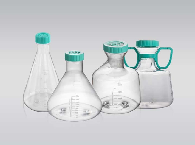 三角培養(yǎng)搖瓶適用于工業(yè)微生物菌種篩選、大規(guī)模發(fā)酵試驗(yàn)、 種子培養(yǎng)等,是細(xì)胞懸浮培養(yǎng)和培養(yǎng)物收集的理想選擇,同時(shí) 也可用于培養(yǎng)基配制、混合及儲(chǔ)存等,相對(duì)于培養(yǎng)瓶、皿、轉(zhuǎn)瓶 等,更加經(jīng)濟(jì)實(shí)惠。 規(guī)格:125mL 250mL 500mL 1000mL 2L 3L 5L 5L(帶把手) 類型:平底 帶擋板 蓋類型:密封蓋 濾膜蓋 材質(zhì):瓶體聚碳酸酯(PC ) / 環(huán)己二醇(共聚聚酯) (PETG), 瓶蓋高密度聚乙烯(HDPE),濾膜聚四氟乙烯(PTFE),均符 合USP Class VI標(biāo)準(zhǔn)